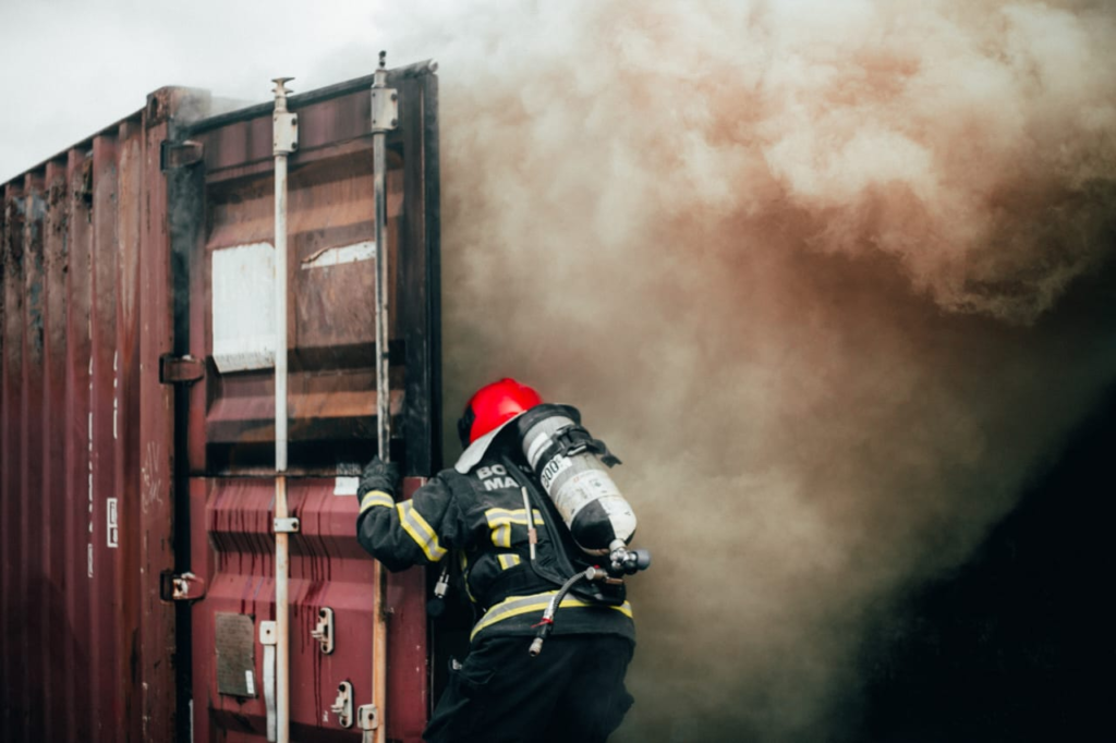 Os participantes tiveram um treinamento de combate a incêndio no nível avançado. Eles simularam, dentro do contêiner, um ambiente incendiado confinado, no qual os bombeiros foram colocados em um espaço com temperaturas elevadas.