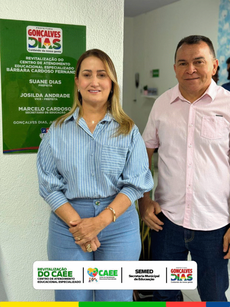 Revitalização do “CAEE” Bárbara Cardoso Fernandes – Centro de Atendimento Educacional Especializado CAEE e m Gonçalves Dias. A prefeita Suane Dias entrega à população de Gonçalves Dias esse Centro Educacional para promover a inclusão e o desenvolvimento integral estudantes especiaiss.