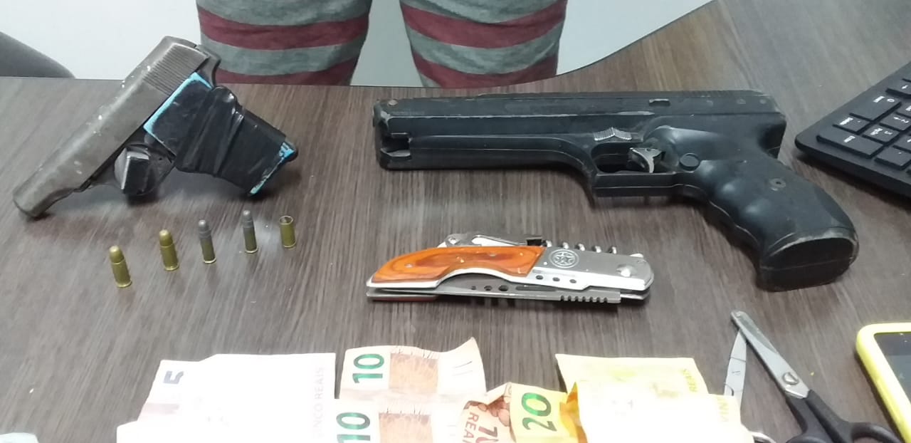 Na posse do indivíduo preso nesta terça os policiais civis encontraram 127 pedras de “crack”, uma arma de fogo marca Beretta, municiada; um artefato de ar comprimido assemelhado a arma de fogo, além de dinheiro em espécie e material plástico, comumente utilizado para embalagem do tipo de droga encontrada.