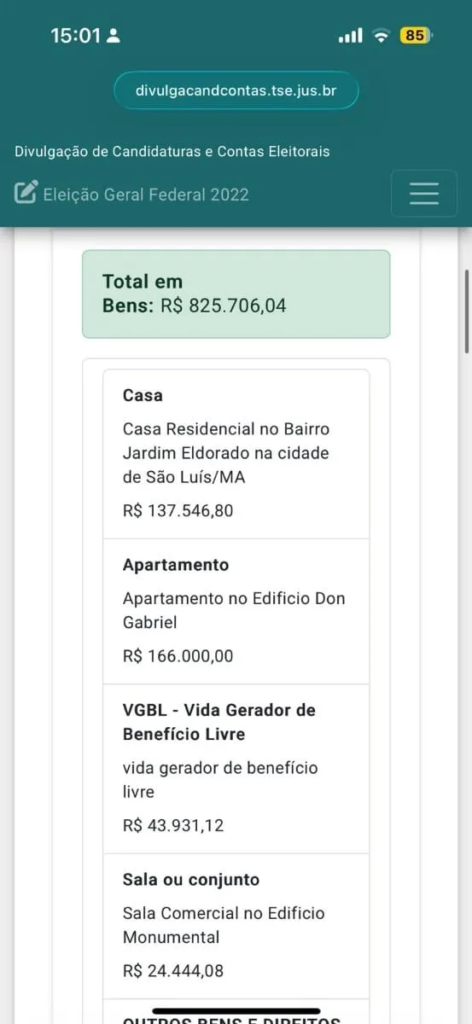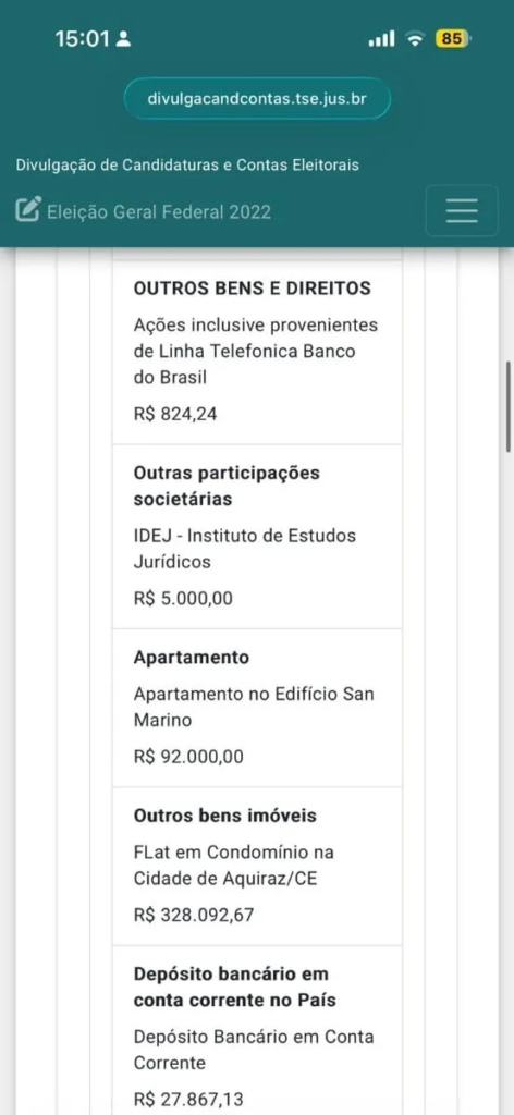A equipe também reforça que o patrimônio declarado pelo ministro está muito abaixo desse montante e encaminhou a últimas prestação de contas de Dino, que segue abaixo: